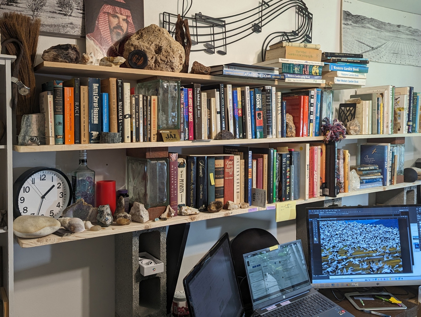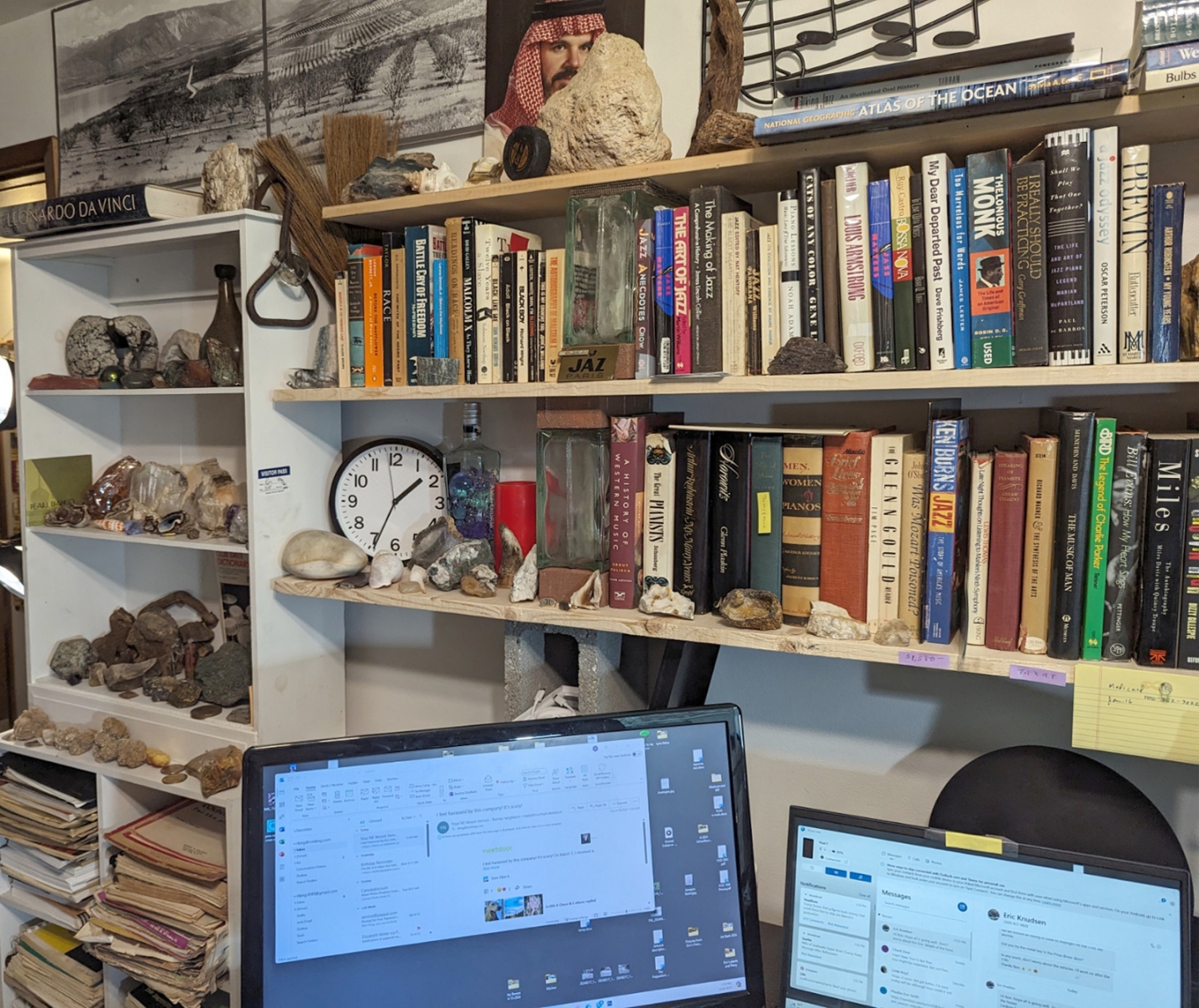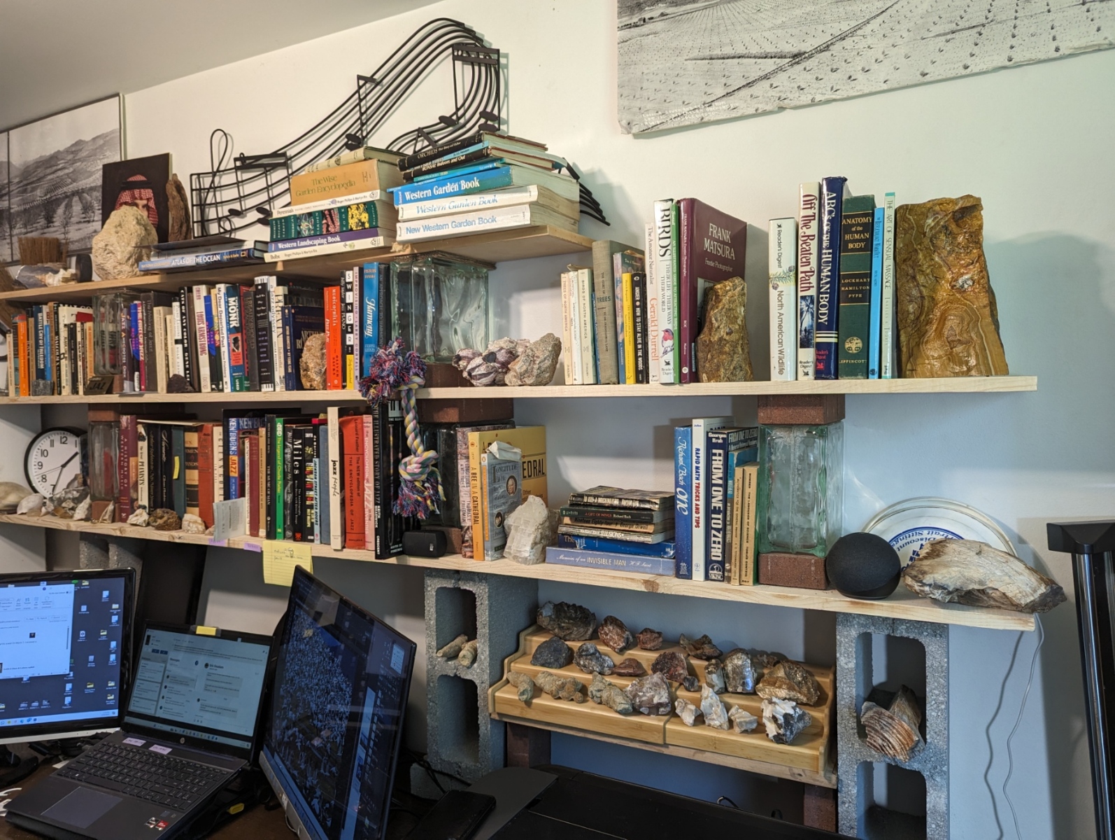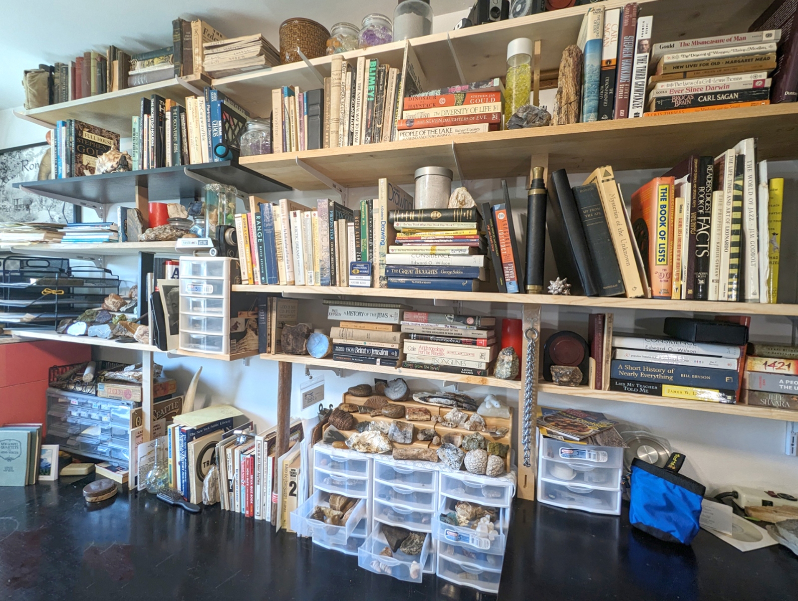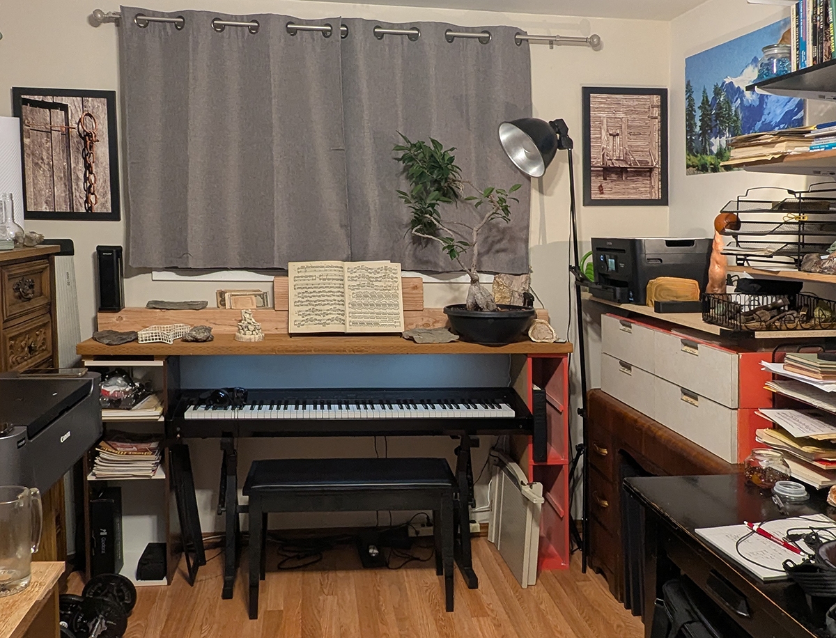 My place is a blending of a library, my art, a rock and mineral collection, and historical artifacts related to my journey. Click on thumbnails to see the entire image. Visitors are welcome by appointment and in small groups only.